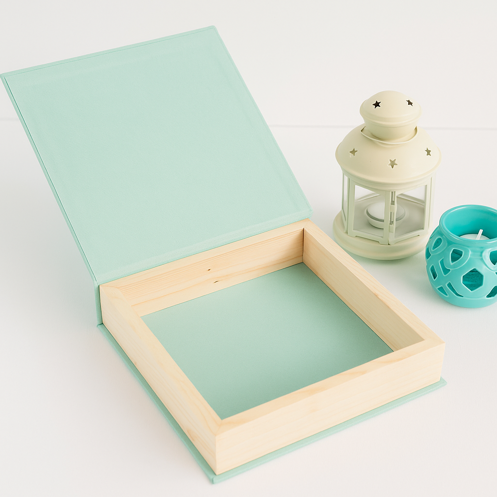 Στιβαρό κουτί  πολυτελείας ιδανικό για άλμπουμ με πολλά σαλόνια μιας και η σκάφη του κουτιού είναι φτιαγμένη από ξύλο και επενδυμένη με δερματίνη η ύφασμα της αρεσκείας σας. Στην στάνταρ έκδοση αυτού του κουτιού υπάρχει και θήκη USB stick στο κάτω μέρος του κουτιού χωρίς να δημιουργεί προβλήματα στο άλμπουμ που θα μπει μέσα. Ο μοναδικός λόγος που η QUALIA αποφάσισε να ντύνει ένα ξύλινο σκάφος κουτιού είναι διότι πίστευε εξ αρχής στην ομοιομορφία που πρέπει να έχουν τα κουτιά που θα συνοδεύουν τα άλμπουμ. Έτσι το κάθε κουτί μας ντύνεται είτε σε διχρωμία είτε μονόχρωμο εξ’ ολοκλήρου.